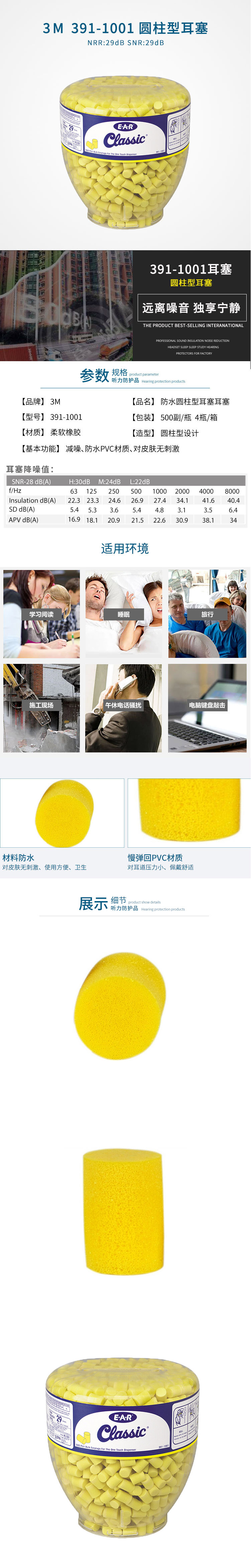 產(chǎn)品名稱:3M EAR 391-1001 Classic圓柱型耳塞(配合耳塞分配器使用)