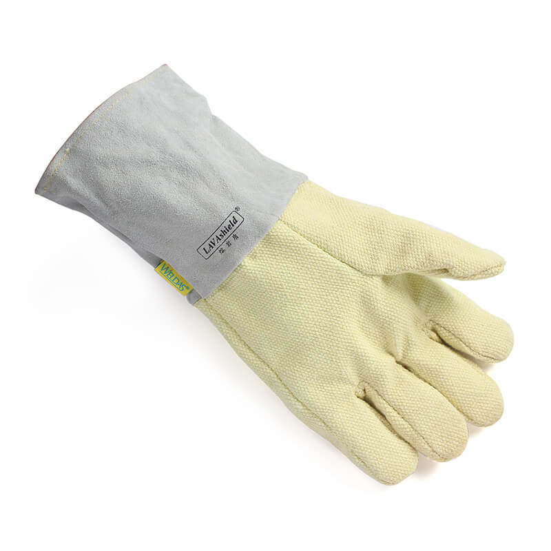 熔巖盾抗高溫手套長(zhǎng)38cm,采用高拉力、阻燃的杜邦Kevlar 4線防火線縫制;手袖采用抗割及耐磨損的牛二層芯皮;手掌則采用746g/m2芳族聚酰胺合成纖維制成;內(nèi)層則是由高效隔熱的羊絨里層以及防火阻燃純棉吸汗內(nèi)里組成;能適合在330℃高溫環(huán)境下持續(xù)工作或者在538℃超高溫環(huán)境下間斷工作。